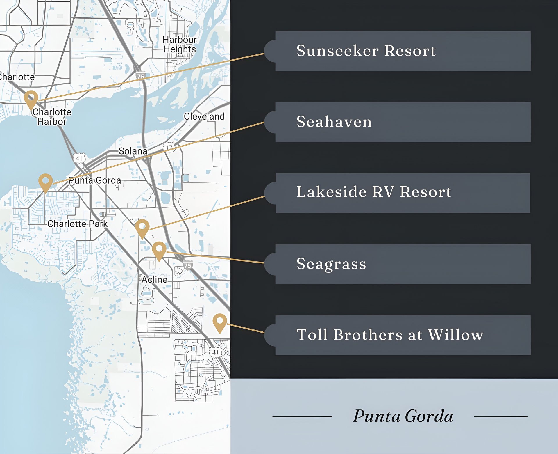 Moving on from the Burnt Store Corridor, here are some other new developments in the greater Punta Gorda area: